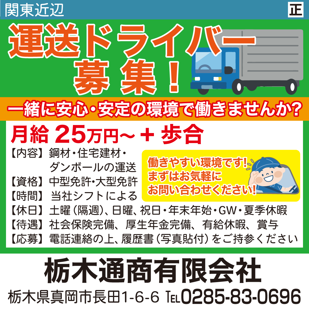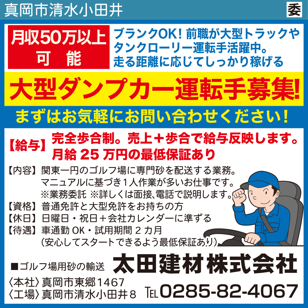 | 2025/12/05 | 真岡市清水小田井 | 運送業 | 大型ダンプカー運転手 | 委託のため、定めはありません | 委 |