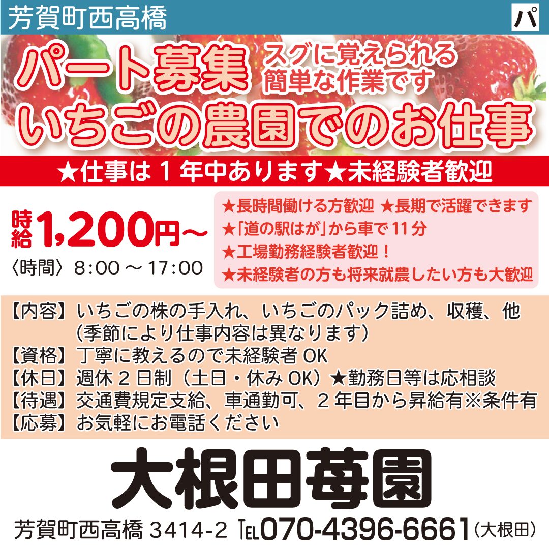 | 2025/12/05 | 芳賀町西高橋 | 農業 | 軽作業・梱包・収穫・管理 など | 8:00~17:00 | パ |