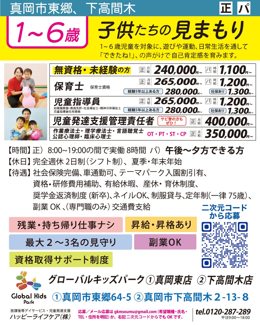 | 2026/02/06 | 真岡市東郷、下高間木 | 医療・福祉 | ケア業務・保育士・児童指導員・児童発達支援責任者 など | 8:00~19:00の間 | 正/パ |